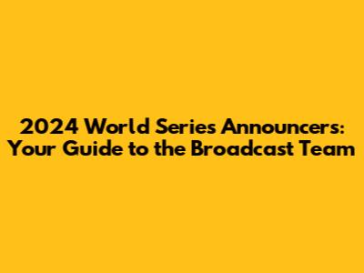 Alright baseball fanatics, buckle up because we're diving deep into the world of the 2024 World Series announcers! If you're anything like me, you know that the broadcast team can make or break a game. They're the voices that guide us through the highs and lows, the nail-biting moments, and the epic home runs. So, let's get you in the know about who will be gracing our screens and airwaves during this year's championship series. We will explore the anticipated broadcast teams, the networks involved, and what we can expect in terms of commentary, analysis, and overall coverage of the World Series. Get ready for some serious baseball talk, guys!