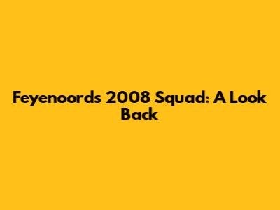 Feyenoord's 2008 Squad: A Look Back