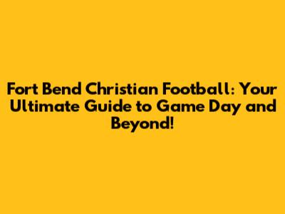 Fort Bend Christian Football: Game Day, Scores, And More!