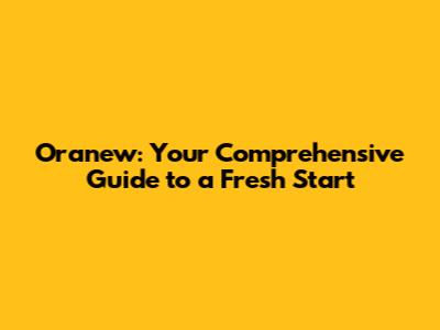 Oranew: Your Guide To A Fresh Start