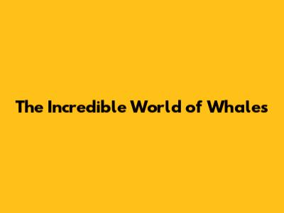 The Incredible World Of Whales