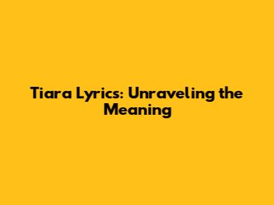 Tiara Lyrics: Unraveling The Meaning